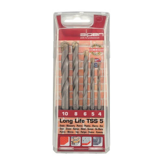 Набор из 5 сверл, также называемых сверлами по бетону и камню, произведен австрийской компанией ALPEN, зарекомендовавшей себя с течением времени чрезвычайно качественными принадлежностями для сверлильных станков.