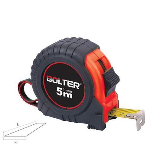 Рулетка резиновая BOLTER Standard с возможностью измерения до 5 м и шириной полосы 19 мм. Он изготовлен из ударопрочного АБС-пластика, что делает его незаменимым аксессуаром для каждого мастера или строителя. Амортизатор идеально подходит для внутренних измерений благодаря точности ограничителя. Лента изготовлена из углеродистой стали с антикоррозийным покрытием, покрыта лаком и окрашена в желтый цвет, а корпус прорезинен, прочный в черный и красный цвет. Рулетка также оснащена крючком, который устанавливается в нулевое положение для более эффективного внутреннего и внешнего измерения. Поставляется с автоматическим сматыванием ленты и блокировкой обратного хода. Наконечник противоударной роллеты изготовлен из особо прочной стали, что обеспечивает лучшее сцепление и точность при работе.