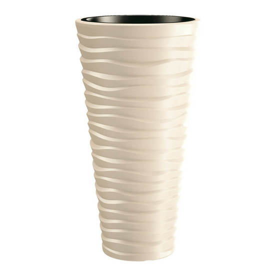 Стильный и качественный горшок из серии Sand Slim марки PROSPERPLAST. из пластика кремового цвета. Небьющийся, устойчивый к ультрафиолетовым лучам и атмосферным воздействиям. Модель впечатляет своим красивым внешним видом благодаря слегка волнистым краям на стенках.