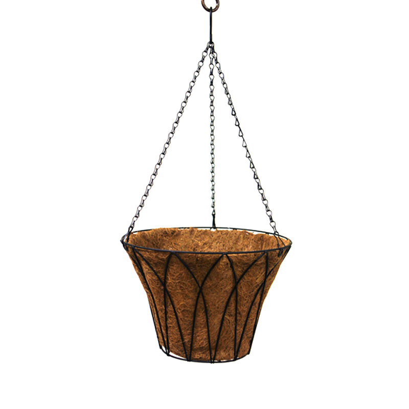Красивый подвесной горшок в виде корзины диаметром 35 см. Подвесной горшок изготовлен из натурального кокосового волокна, а каркас - из кованого железа. Горшок для кокоса подходит для размещения как на открытом воздухе на крыльце, террасе или балконе, так и в помещении внутри жилого помещения. Горшок подходит для любого типа садовых или комнатных подвесных растений.