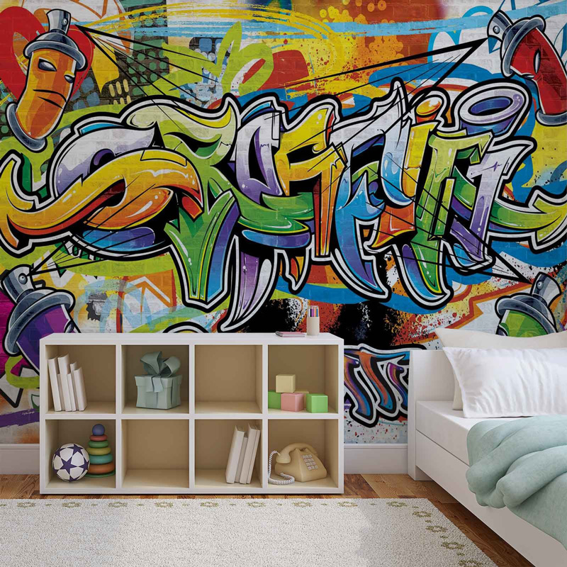 Качественные, широкоформатные фотообои для детской комнаты с изображением - Граффити. Фотообои подходят для оформления стены в любом помещении, не подверженном воздействию повышенного уровня влажности.