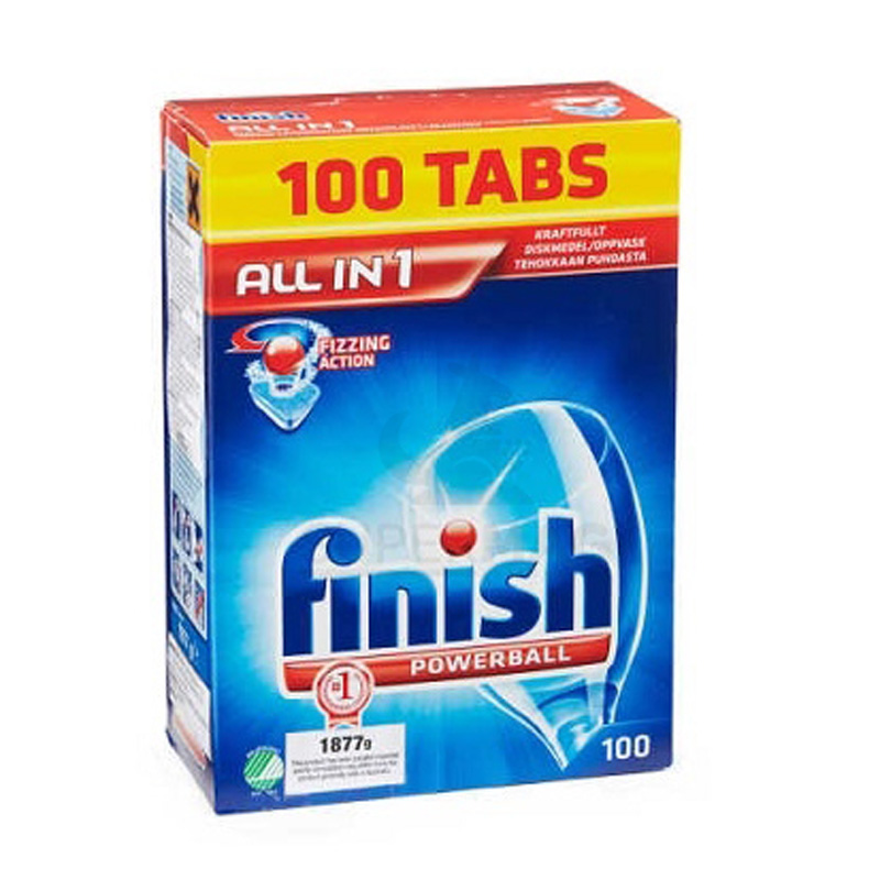 Набор из 100 таблеток для посудомоечной машины All in 1 торговой марки FINISH. Таблетки выпускаются в форме геля. Их можно использовать для помещения в посудомоечные машины, смягчая в них воду, используемую для мытья посуды и кухонной утвари. Это предотвращает появление накипи. Это результат накопления известняка, который встречается в районах с более жесткой водой.