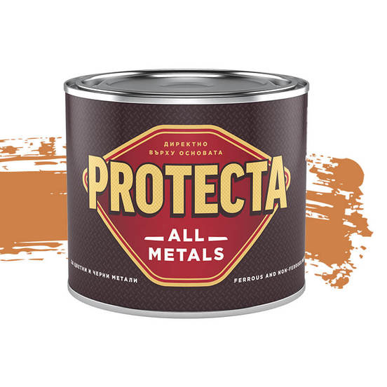 Orgachim Protecta All Metals бронзовый цвет предназначен для обработки черных и цветных металлов. Выполняет одновременно функции ингибитора коррозии, грунтовки и декоративного покрытия. Продукт имеет очень хорошую укрывистость, легко наносится, устойчив к неблагоприятным погодным условиям. Используется для покраски слабо ржавых или ржавых поверхностей. Он работает путем преобразования ржавчины в твердые нерастворимые соединения железа. Идеально подходит для перил, заборов, стальных поверхностей, резервуаров и т.д.