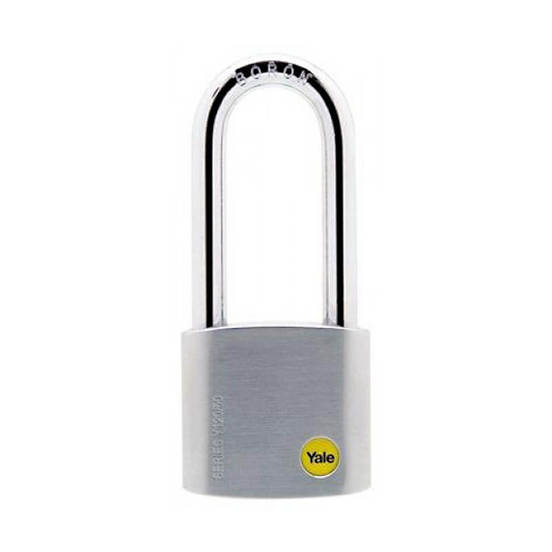 Упрочненный навесной замок YALE с удлиненной скобой для максимальной защиты арки от вредоносных действий. Запорная система для дверей и цепей производится торговой маркой YALE, которая известна своей продукцией высокого качества. Замок изготовлен из закаленной стали и твердой латуни. Он устойчив к атмосферным воздействиям, что делает его пригодным для использования в местах и помещениях с повышенной влажностью. Размер корпуса: 52 х 50 мм. Высота кронштейна: 63 мм. Толщина стальной арки: 10 мм. Замок также доступен с 3 ключами.