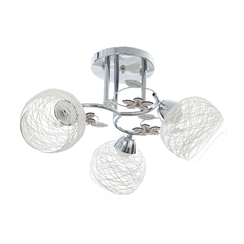 Тройной потолочный светильник ATMOS от EL BULGARIA диаметром Ф45 см, расстояние от потолка 15 см, мощность 3 x 40 Вт и цоколь 3 x E27. Благодаря стильному дизайну двойной потолок подходит для освещения спальни, гостиной, гостиной, детской и столовой. Предназначен для стационарного потолочного монтажа. Обеспечивает высокую степень светового потока. Светильник изготовлен из хромированного металла с красивыми декоративными элементами в виде цветов и осветительной частью из прозрачного стекла с конопляной оболочкой белого цвета. Потолок имеет низкую степень защиты от водяных брызг и пыли – IP21, поэтому в помещении, в котором он будет установлен, не должно быть повышенного уровня влажности и пыли. Светильник подходит для основного освещения внутренних помещений. Он совместим со светодиодными и энергосберегающими лампочками.