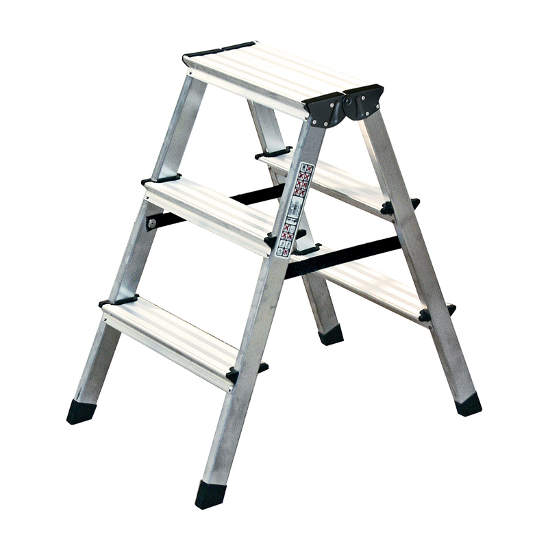 Алюминиевая двойная лестница DOPLO 2 x 3 ступени удобна как для непрофессионального, так и для домашнего использования.