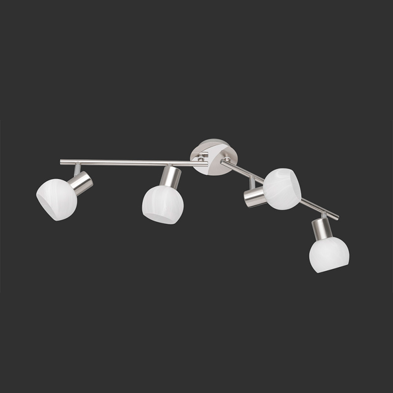 Четырехточечный прожектор с направленным светом, ширина 200 мм, высота 110 мм, длина 695 мм, мощность 4 x 40 Вт и цоколь 4 x E14. Точечный светильник также подходит для использования со светодиодными лампами мощностью 6 Вт.