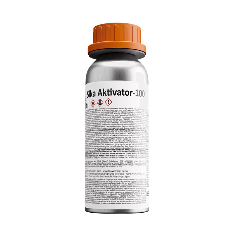 Sika® Aktivator-100 — высококачественный бесцветный активатор, специально разработанный для улучшения адгезии к различным непористым основаниям. Продукт на основе растворителя реагирует с влагой и создает активные связи между основанием и герметиками, клеями или грунтовками. Идеально подходит для обработки перед нанесением однокомпонентных полиуретановых продуктов Sika®.