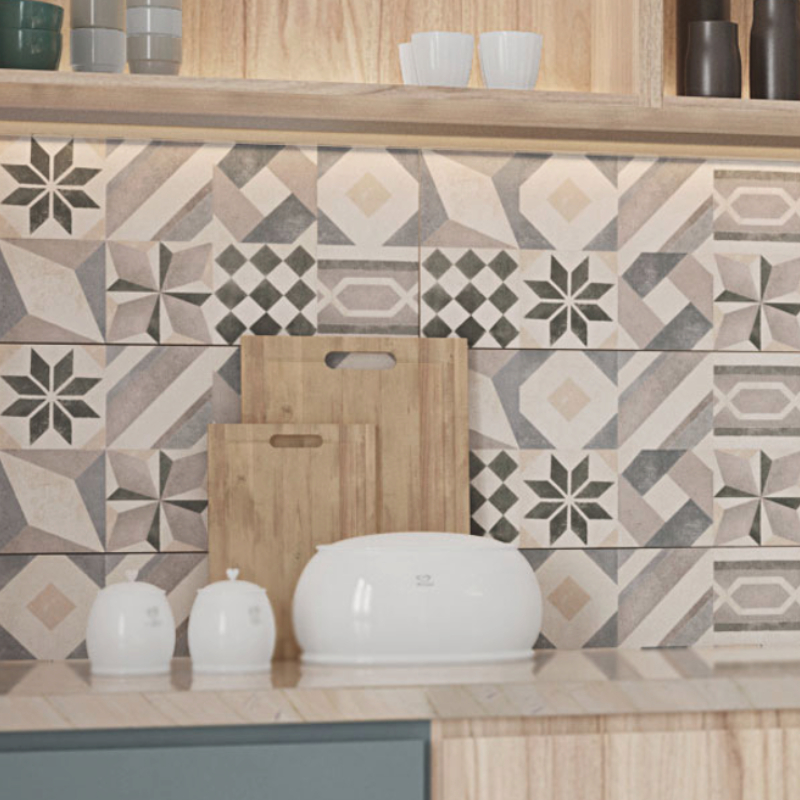 Гранитная плитка из серии Fiore Avenue Декор марки CERAMICA FIORE в сером цвете пэчворк. Плитка имеет размер 30 х 60 см и толщину 9 мм. Их поверхность матовая. В одной коробке 8 черепиц с площадью кровли 1,44 кв.м.