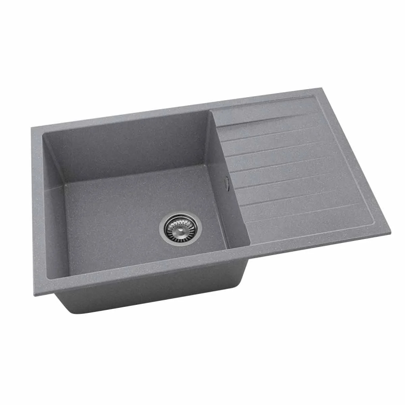 Встраиваемая кухонная мойка FAT из гранита, размер 80 x 49 см, с возможностью выбора столешницы слева или справа. В комплект входит высококачественный итальянский сифон для мойки размером Ф90 мм.
