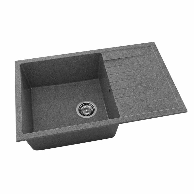 Встраиваемая кухонная мойка FAT из гранита, размер 80 x 49 см, с возможностью выбора столешницы слева или справа. В комплект входит высококачественный итальянский сифон для мойки размером Ф90 мм.