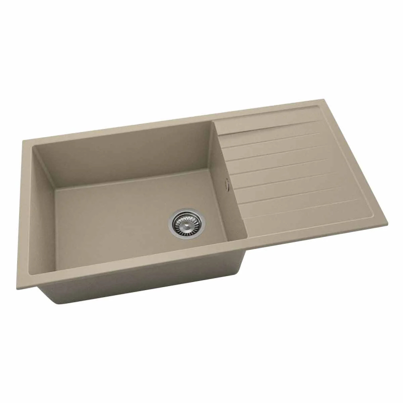 Встраиваемая кухонная мойка FAT из гранита, размер 95 x 49 см, с возможностью установки столешницы слева или справа. В комплект входит высококачественный итальянский сифон для мойки размером Ф90 мм.