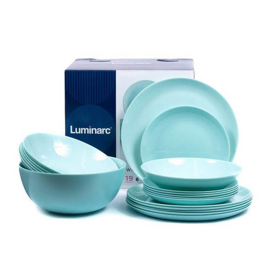 Обеденный набор из серии Diwali бренда LUMINARC из 19 деталей. Тарелки в наборе бирюзового цвета.