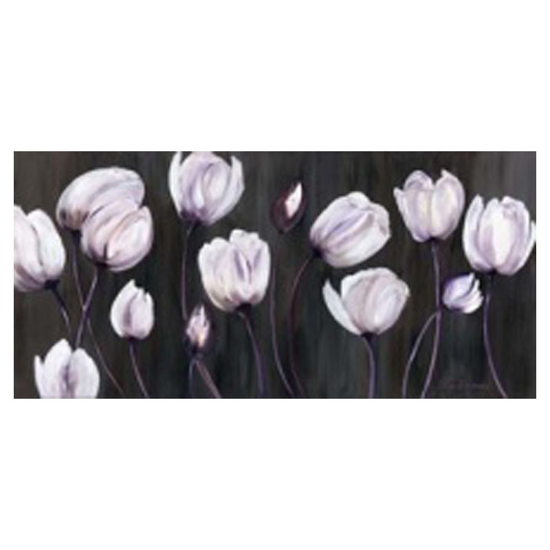 Картина с белыми тюльпанами размером 40 х 77 см. Это изображение оттиска /принт/, выполненное с помощью высококачественной лазерной технологии. Картина имеет стильную и красивую раму из МДФ, а холст выполнен из льняной бумаги, имеющей небольшой рельеф.
