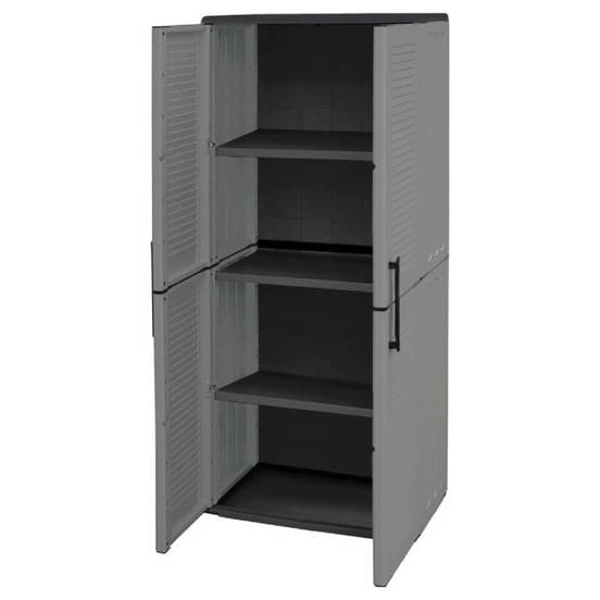Двухстворчатый шкаф из ПВХ имеет размеры 68 х 37 х 163 см. Бытовой шкаф легкий и универсальный. Продукт для хранения имеет легкую, простую установку - легко обслуживать и чистить - с помощью влажной ткани. Изготовлен из высококачественного ПВХ. Шкаф полностью адаптирован к бытовым нуждам и может быть размещен как в сухих, так и во влажных и открытых пространствах, таких как ванные комнаты, туалеты, сады, террасы и балконы.