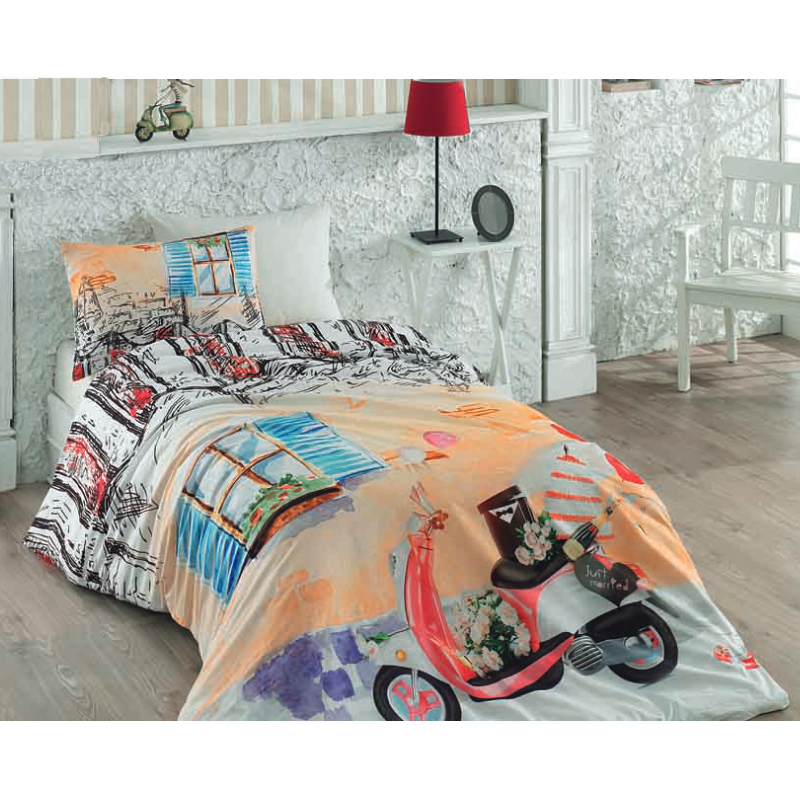 Комплект постельного белья 3D40 Vespa от AKNOME состоит из 3 частей. Изготовлен из высококачественного ранфорса - 100% хлопок. Спальный комплект состоит из простыни, пододеяльника и наволочки. Детали напечатаны в 3D-шаблоне. Ранфорс – это базовый вид ткани для постельного белья, который отличается высокой износоустойчивостью, плотностью, прочностью и отличными гигиеническими свойствами.