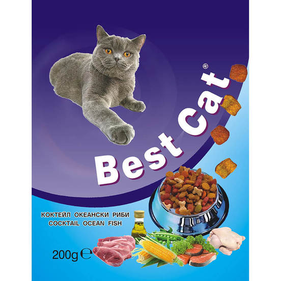 Корм для кошек BEST CAT коктейль из морской рыбы в виде гранул. Богат белком, который укрепляет организм домашних животных.