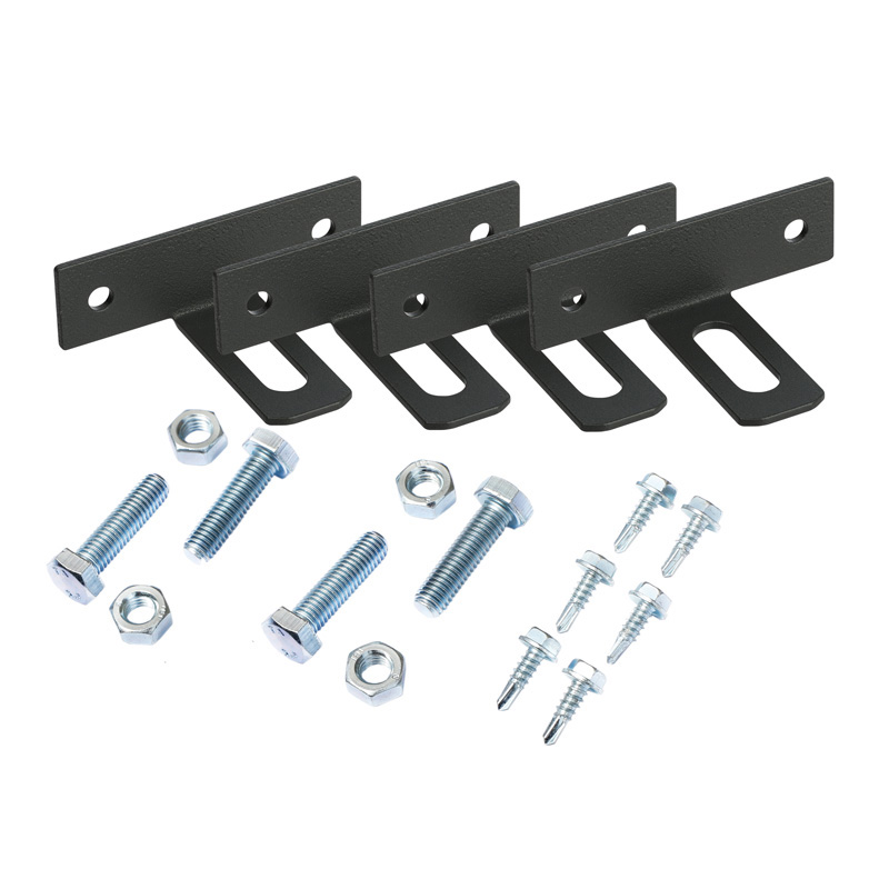 Крепеж для заборной панели марки POLBRAM. Хомут типа Т оцинкован. Важный элемент для крепления панели забора выполнен из черной смолы RAL 9005 в соответствии с системой описания цветов и их названий.