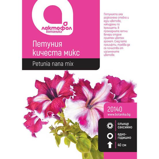 Китчевая петуния имеет разветвленный стебель и крупные, махровые цветки, вьющиеся по краям. Прохладными летними вечерами источает приятный цветочный аромат. После цветения его следует очистить от засохших цветков. У петунии низкие плотные стебли и крупные цветки. Хорошо растет на солнечных местах и требует регулярного полива. Размножают в феврале-марте семенами. Петуния с ее разнообразием цветов, форм, расцветок, обильным и продолжительным цветением относится к числу самых популярных садовых растений.