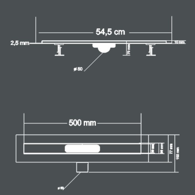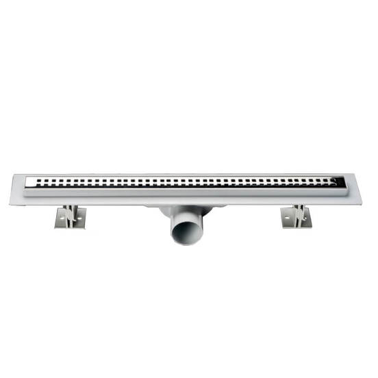 Линейный слив в полу Slim. Изготовлено из основы из высококачественного ПВХ-материала и сетки из нержавеющей стали. Длина сифона составляет 50 см.