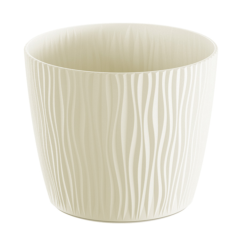 Пластиковый горшок для кашпо из серии Sandy кремового цвета. Он изготовлен из ПВХ в соответствии с высокими стандартами качества. Он устойчив к любым погодным условиям, ультрафиолетовым лучам, механическим повреждениям, питательным веществам и пестицидам для растений.