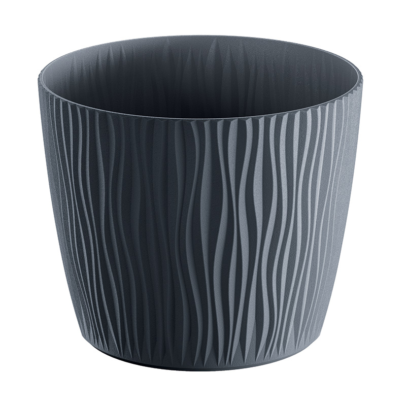 Пластиковый горшок для кашпо из серии Sandy цвета антрацит. Он изготовлен из ПВХ в соответствии с высокими стандартами качества. Он устойчив к любым погодным условиям, ультрафиолетовым лучам, механическим повреждениям, питательным веществам и пестицидам для растений.