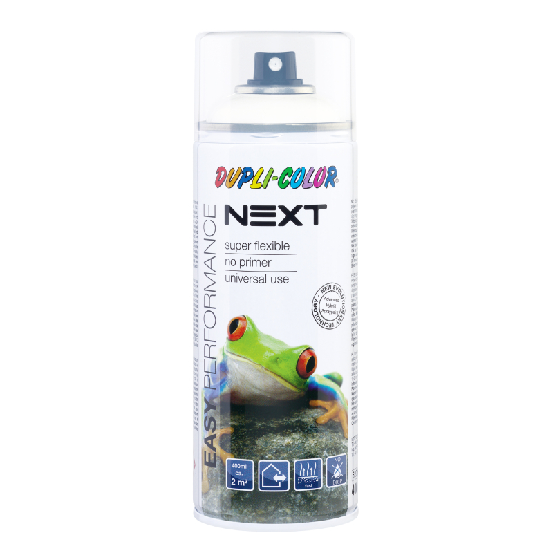 Быстросохнущие аэрозольные краски DUPLI COLOR Next используют инновационную формулу, основанную на эволюционной основе, которая обеспечивает чрезвычайно простое нанесение. Они характеризуются богатой и интересной цветовой гаммой, позволяющей создавать прекрасные украшения и новые применения.