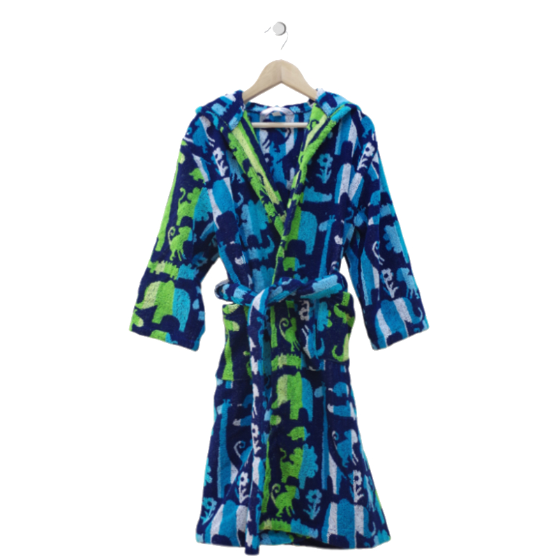 Пушистый детский халат Zoo болгарского бренда YANA изготовлен из 100% хлопка плотностью 400 г/кв.м, что способствует его высокой впитывающей способности. Детский халат имеет размер 128 см и подходит для детей от 4 до 6 лет.