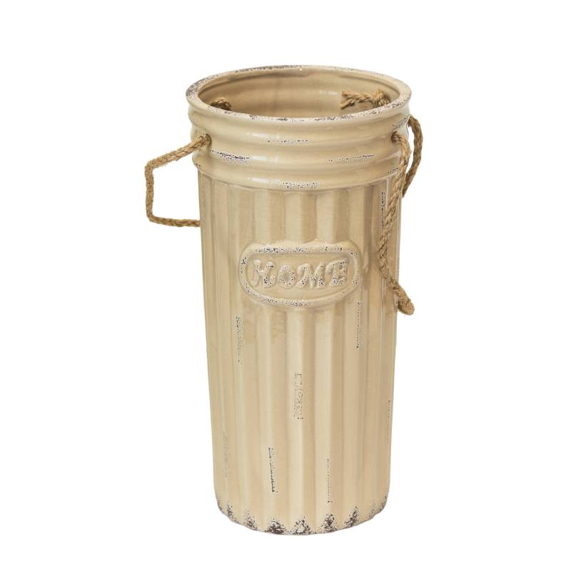 Керамическая ваза для цветов размером 27 см. Ваза выполнена в винтажном стиле и бежевого цвета.