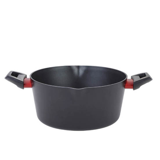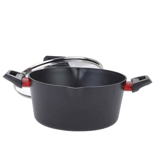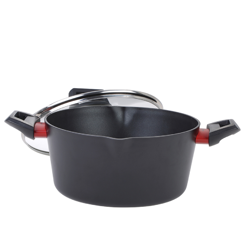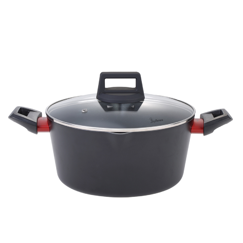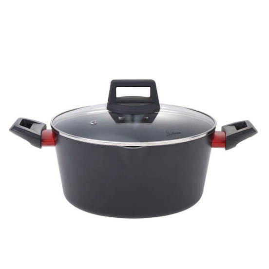 Кастрюля с крышкой LF Rosso FR-2095 марки LUIGI FERRERO черного цвета. Кастрюля изготовлена из высококачественного экструдированного алюминия для оптимальной теплопроводности. Имеет прочное антипригарное покрытие.