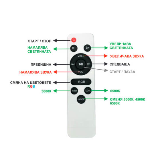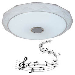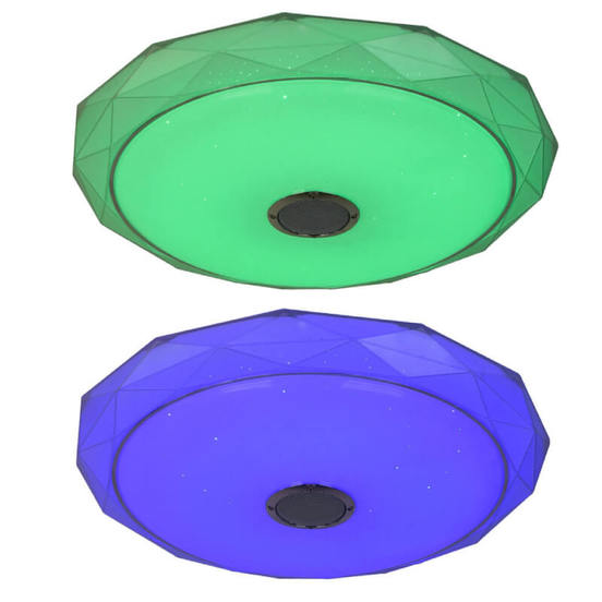 Светодиодный потолок D-IL имеет диаметр F 510 мм и мощность 72Вт. Модель изготовлена из металла и пластика и имеет угол заточки 120º. Он имеет пульт дистанционного управления, который управляет функцией RGB, цветовой температурой и музыкой. Музыкальный потолок имеет степень защиты IP20, что делает его пригодным для использования внутри помещений.