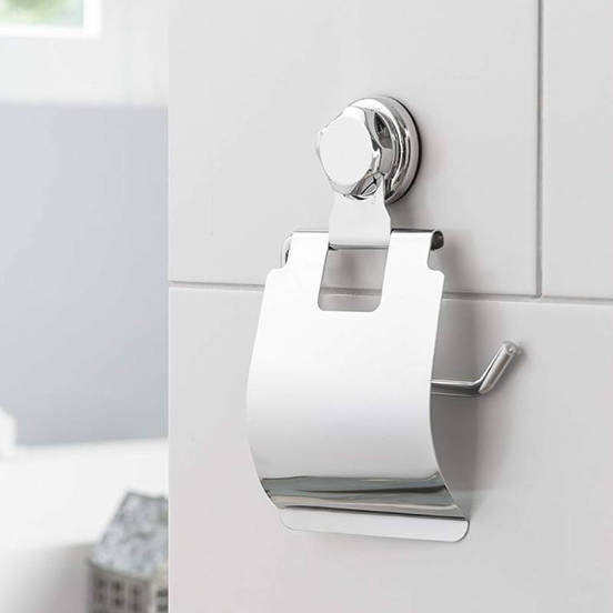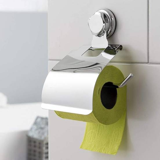 Держатель для туалетной бумаги с вакуумной склейкой - не нужно клеить или сверлить плитку в ванной. Размеры держателя 14,8 х 3,3 х 22,5 см, максимальная нагрузка до 4 кг.