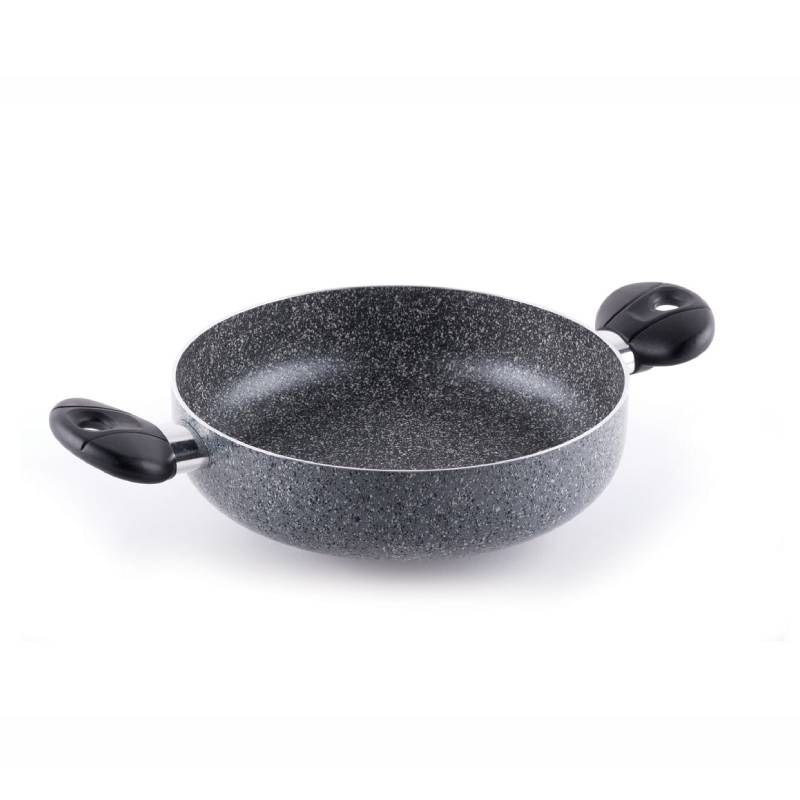 Сковорода с двумя ручками изготовлена из безопасного для пищевых продуктов алюминия, не содержит ПФОК, тяжелых металлов и никеля и подходит для повседневного использования. Подходит для всех плит, кроме индукционных. Прочные ручки из бакилита обеспечивают стабильный, безопасный и эргономичный захват. Его можно легко и удобно мыть в посудомоечных машинах.