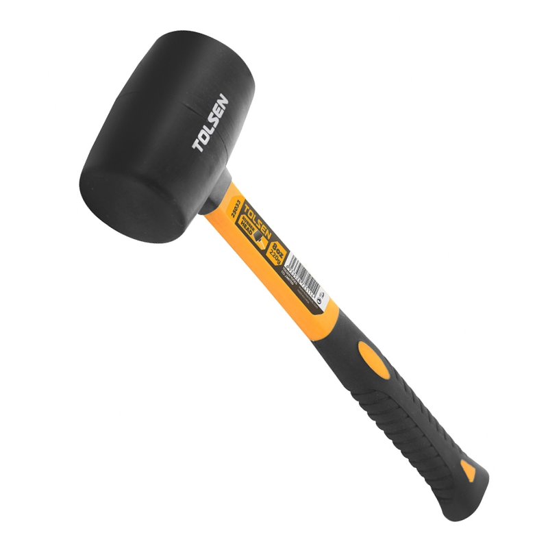 Резиновый молоток TOLSEN весит 225 г и имеет черную головку из высококачественной резины. Рукоятка молотка изготовлена из стеклопластика.