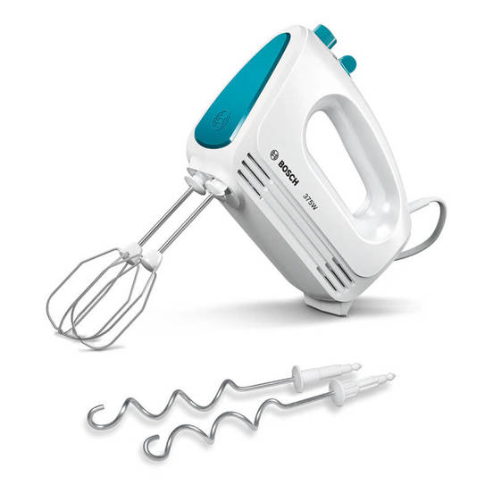 Миксер MFQ2210D от BOSCH. Прибор имеет мощность 375 Вт, с современным мотором - мощный, но при этом тихий и легкий. Может работать на 4 скорости. Он оснащен функциями мгновенного запуска и турбо-кнопки.