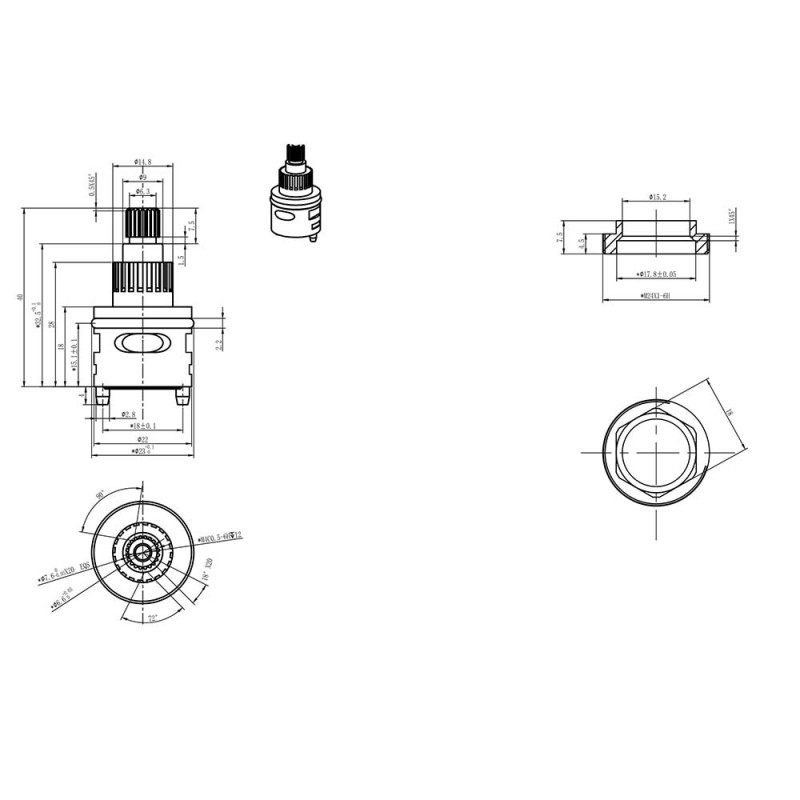 Переключатель смесителя с гайкой, прозрачный. Диаметр: 2,3 см. Высота: 4 см. Материал: пластик, керамика, латунь. Основной цвет: синий.