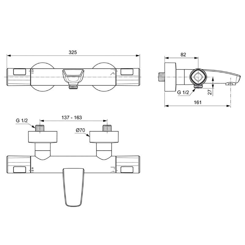 Набор для ванной марки IDEAL STANDARD серий Cerafine O и Ceratherm T100. Набор 3 в 1, включающий термостатический смеситель для ванны и душа с трубчатой подвеской, ручной душ, шланг и смеситель для раковины.