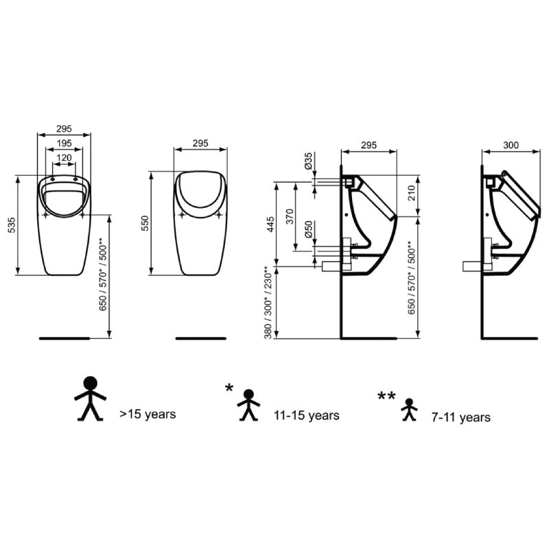 ПОДСОЕДИНИТЕ писсуар с задним (закрытым) источником питания и горизонтальным сливом. Писсуар совместим с плавно закрывающейся крышкой. Обложка фото в комплект не входит.