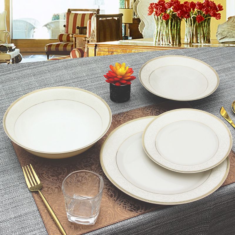 Идеально подходит для домашнего стола, где собираются ваши близкие и собирается вся семья. Вы можете использовать многофункциональные тарелки по своему усмотрению во время каждого приема пищи. Мелкие цветочные детали в сочетании с рельефом на них и дополненные золотой окантовкой придают элегантность.