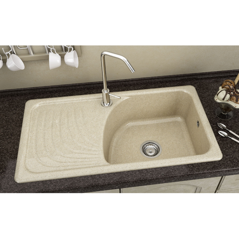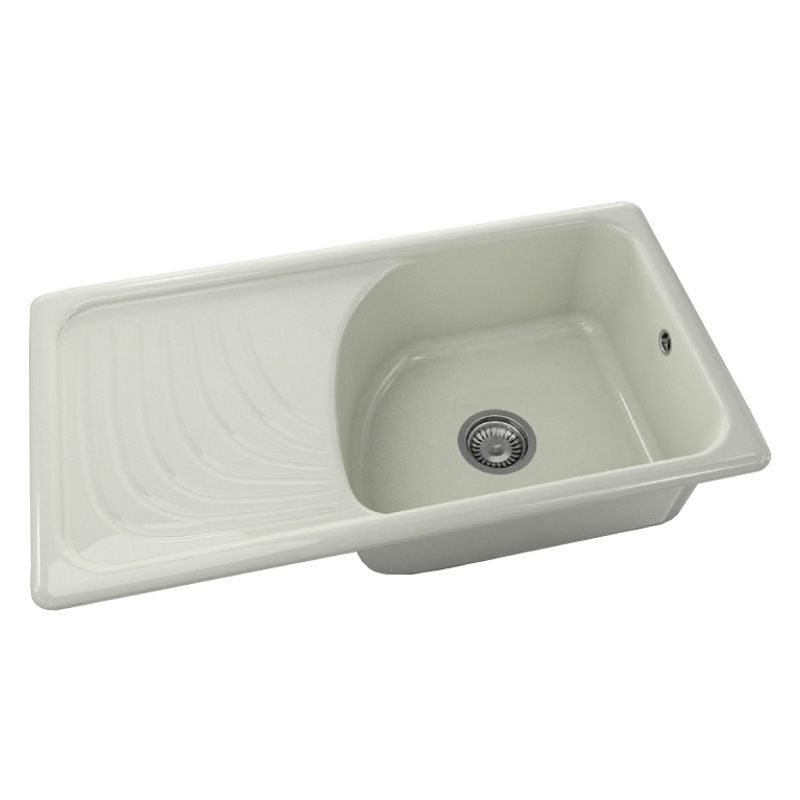 - Высокая стойкость – этот тип кухонных моек обладает высокой стойкостью к кислотам и основаниям, моющим средствам и тепловому удару.Кухонная мойка выдерживает температуру от -50 до +150°С.