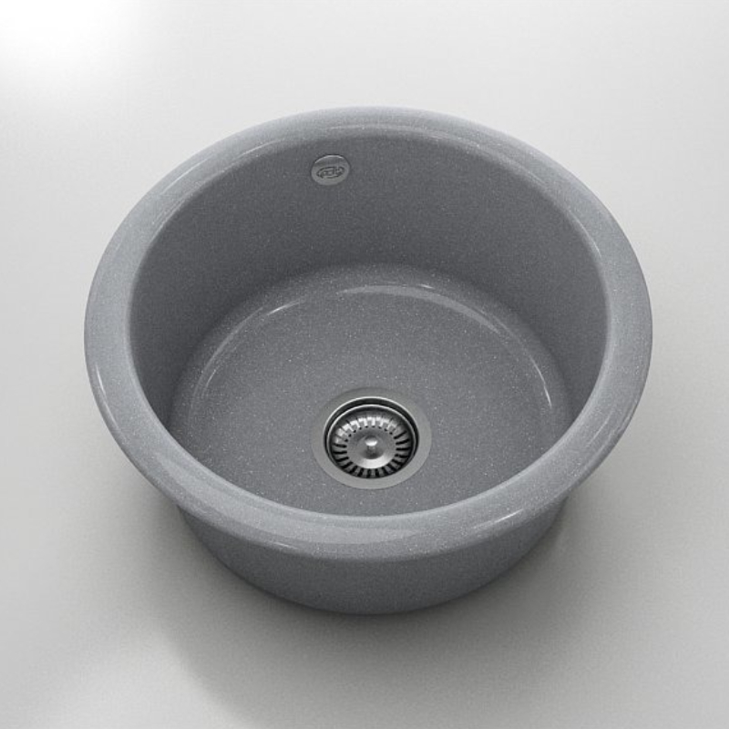 Круглая встраиваемая кухонная мойка марки FAT. Изготовлен из гранита диаметром 49 см в цвете City Grey. В комплект входит качественный итальянский сифон для мойки размером φ90 мм.