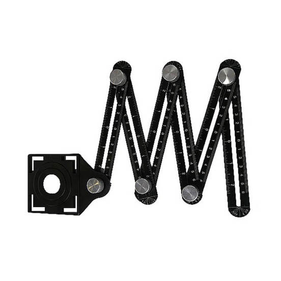 Шаблон для переноса углов и отверстий FAST LEVEL имеет прочный алюминиевый корпус и 6 складных рычагов. Пантограф регулируется по длине и доступен в черном цвете.