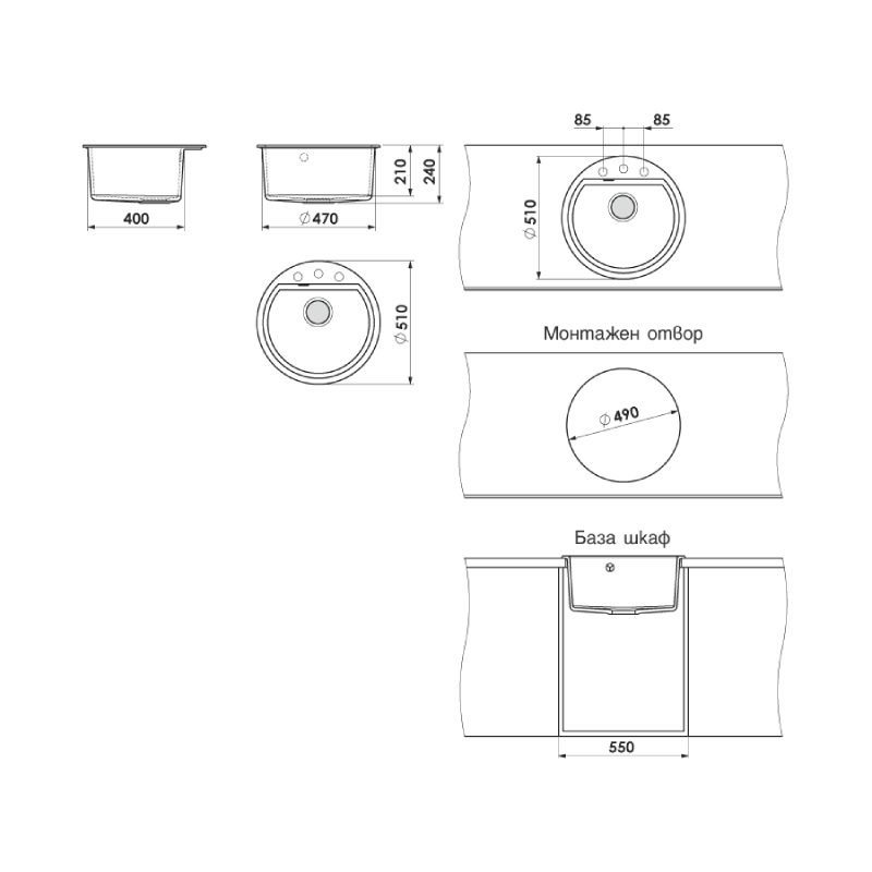 Встраиваемая кухонная мойка FAT изготовлена из гранита диаметром F 51 см. Специфическая структура материала снижает шум от падающей в корыто воды. Характеризуется устойчивостью к УФ-лучам, а цвета сохраняются даже при длительном воздействии солнечных лучей. Покрытие раковины обладает высокой стойкостью к агрессивным моющим средствам бытовой химии, что препятствует образованию пятен и отложений, обеспечивает легкую и быструю очистку.