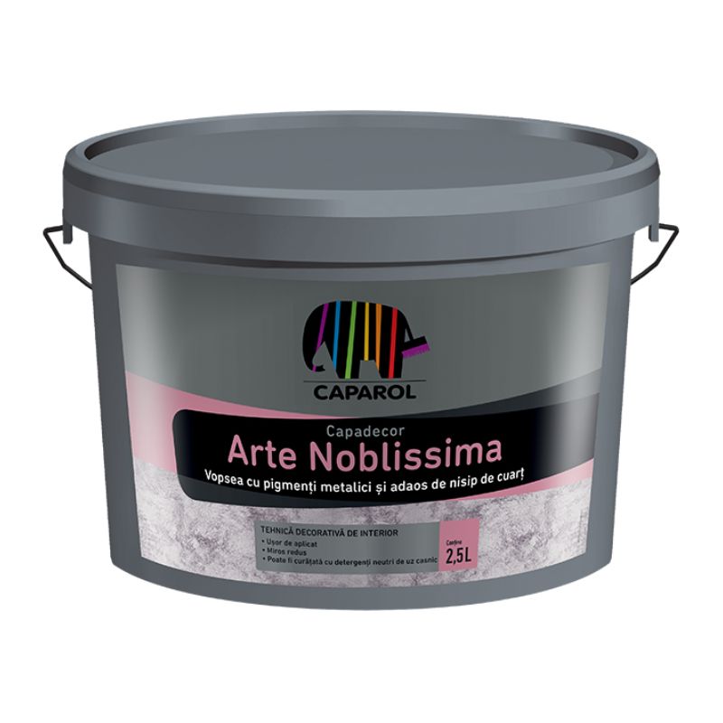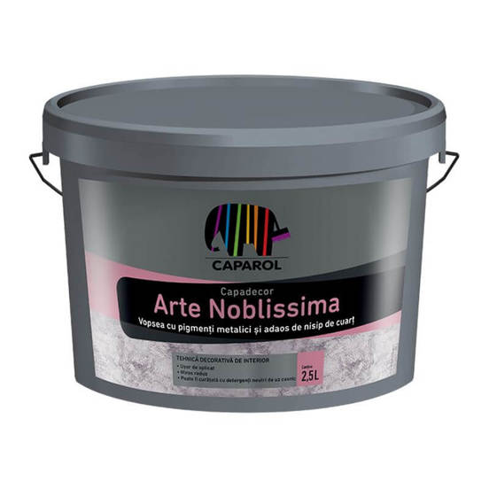 Эффектная интерьерная дисперсионная краска Arte Noblissima от CAPAROL. При использовании в качестве декоративного материала из него можно создавать интересные архитектурные детали интерьера. В основном используется в представительских помещениях и для исключительных эстетических акцентов, для отделки стен в торговых центрах, офисных зданиях, банках, страховых компаниях, дискотеках и т. п.