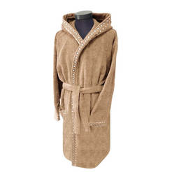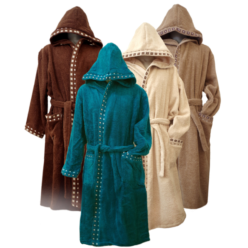Халат с капюшоном изготовлен из 100% микрохлопка и имеет высокую плотность 400 г/кв.м, что гарантирует постоянную мягкость и сохранение впитывающих свойств даже после многократных стирок.