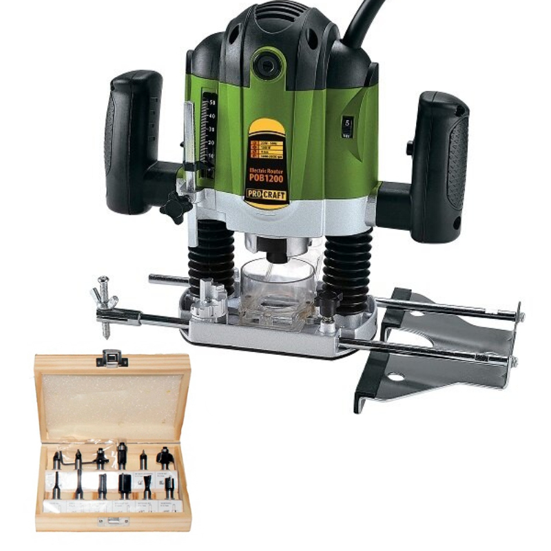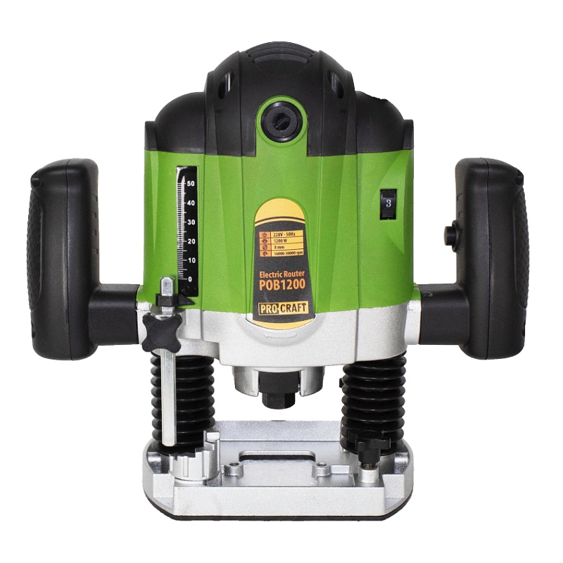 Фрезер PROCRAFT POB1200 предназначен для использования в столярных мастерских, в любительских и полупрофессиональных целях. Резак подходит для работы с деревянными материалами и деревянными элементами. Модель запускается однофазным переключателем мощностью 1200 Вт. Скорость легко регулируется от 16 000 до 30 000 об/мин. Глубина фрезерования также варьируется – от 0 до 50 мм. Повышенная защита от пыли гарантирует долгий срок службы резака. POB1200 поставляется с 12 типами фрез в деревянном ящике. С ним легко и удобно работать. Он не напрягает руку и слегка скользит по материалу. Работает с фрезами 6 и 8 мм, их замена тоже не представляет сложности.