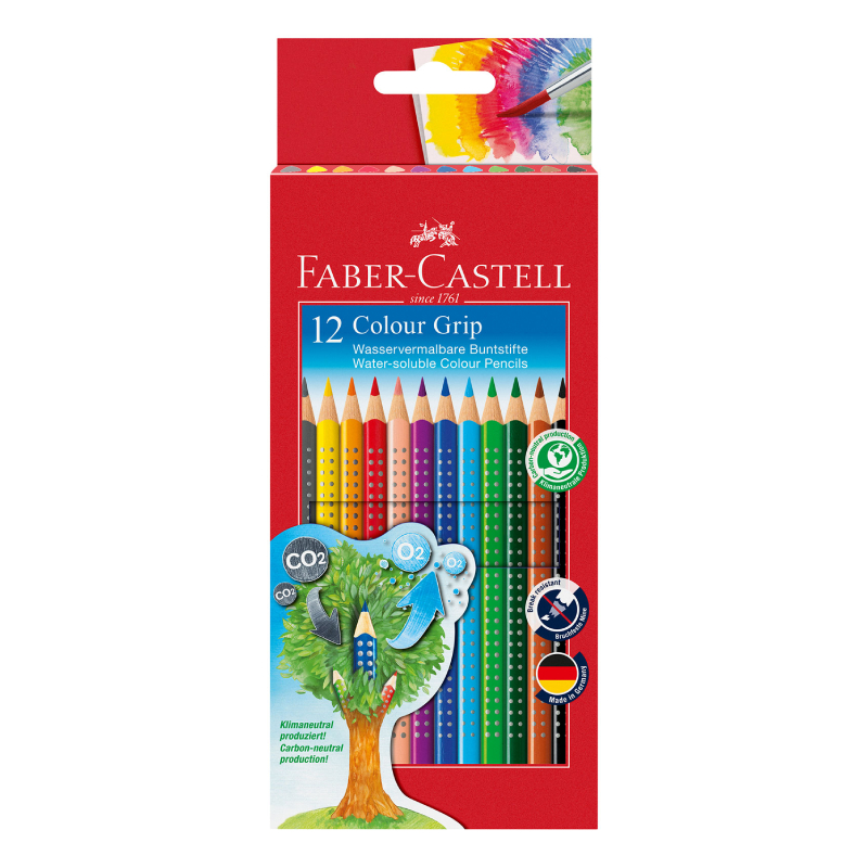 Набор акварельных карандашей 12 цветов бренда FABER CASTELL. Разработан и изготовлен так, чтобы идеально соответствовать детской руке. Запатентованная зона Grip обеспечивает безупречное и комфортное рисование. Очень высокое содержание пигментов в графите.