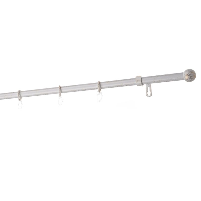 Комплект раздвижного металлического карниза из серии Mira бренда Gardinia в бело-золотом цвете. Карниз полностью сделан из металла, что делает его исключительно подходящим для подвешивания тяжелых и плотных портьер.