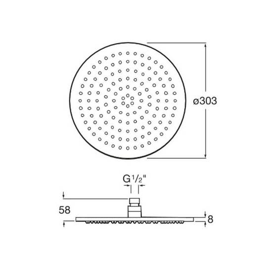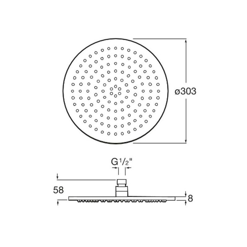 Большой круглый душевой поддон ROCA A5B3950CN0 размером f300 мм и тонкой конструкцией. Душевой поддон изготовлен из высококачественной нержавеющей стали и имеет толщину всего 8 мм. Имеет стандартное соединение 1/2" и подвижную головку для регулировки угла струи воды. Доступен в стильном черном цвете.