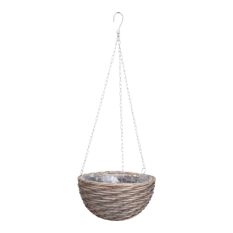 Подвесной горшок для кашпо - плетеная корзина. Горшок имеет размер 30 см и изготовлен из натурального материала - переплетенных веточек вербы.